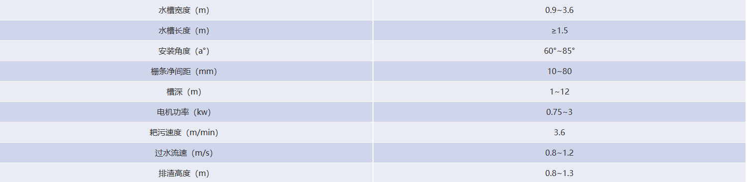1、訂貨時注明:槽寬、槽深、水深、安裝角度、柵條間隙、排渣高度、材質要求。